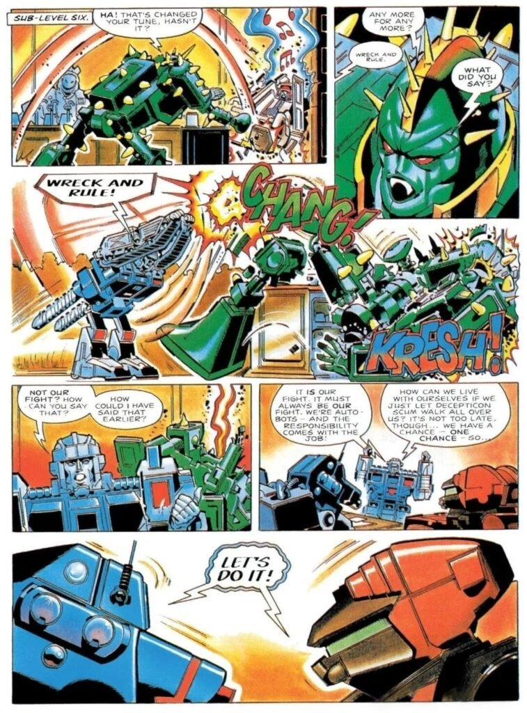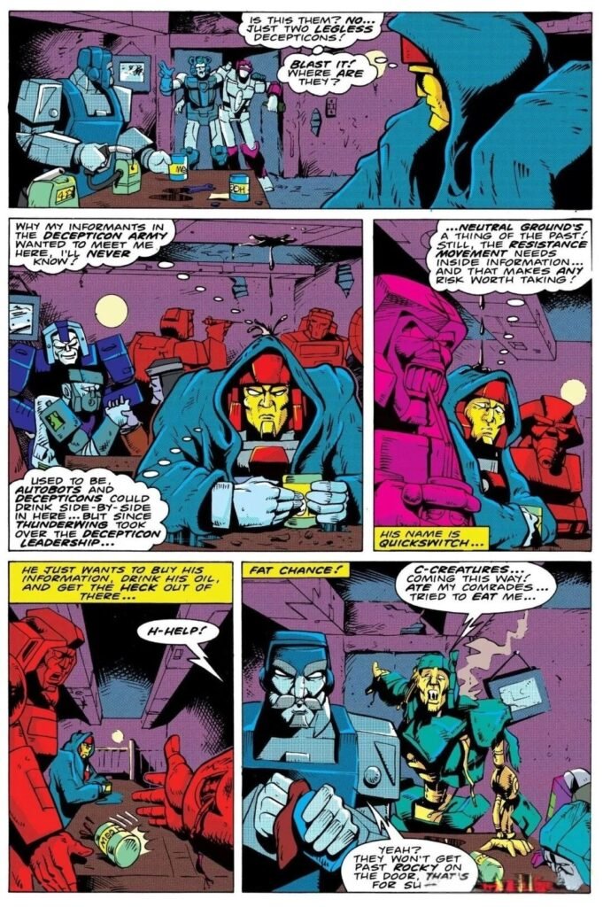 The Old Oil House hasn’t been a haven of peace in every era. In the follow-up storylines of the Marvel UK comics, after Thunderwing seizes power, the bar’s neutral status is revoked. On an otherwise ordinary night, the Mechanimals track the Decepticon Power Warrior Skywarp to the bar’s doors.