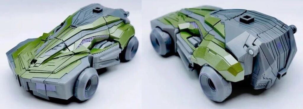 The Cybertronian car (its vehicle mode after transformation) also feels quite plain. A large area of gray covers the entire body, making the green paint isn’t very noticeable. Its overall performance is not as good as Barricade’s vehicle mode.